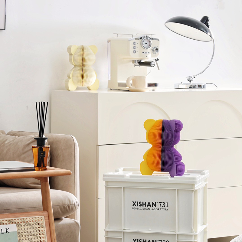 Mini bear shape paper honeycomb ornaments——black; white; green; yellow; green; grown and multiple colors can choose